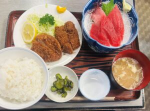 マグロとメンチカツ定食です!!!